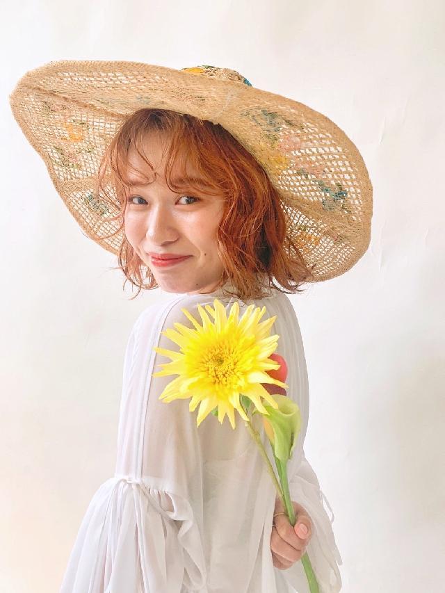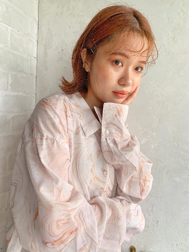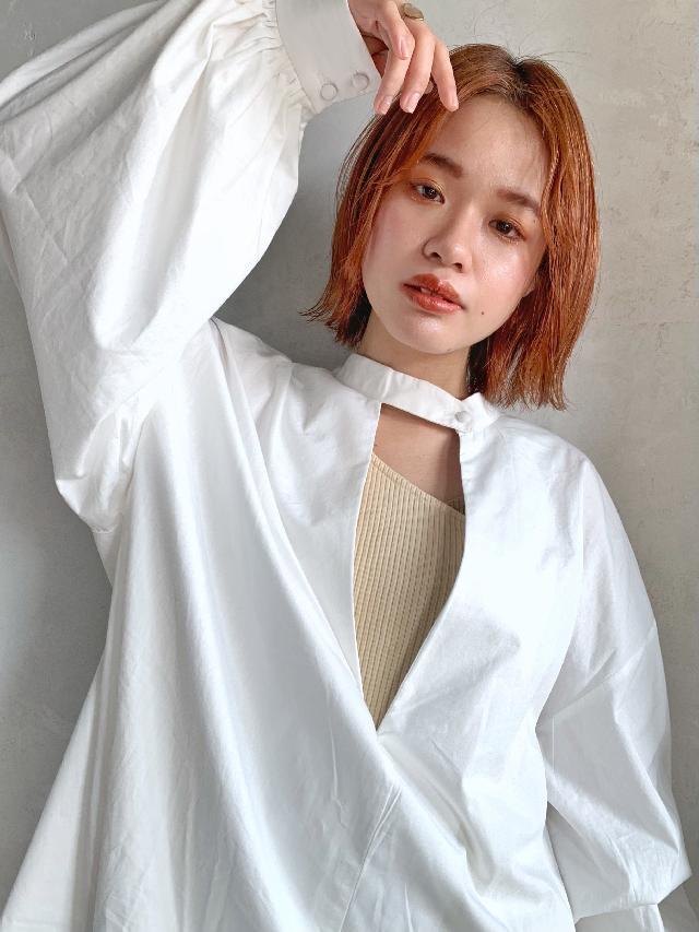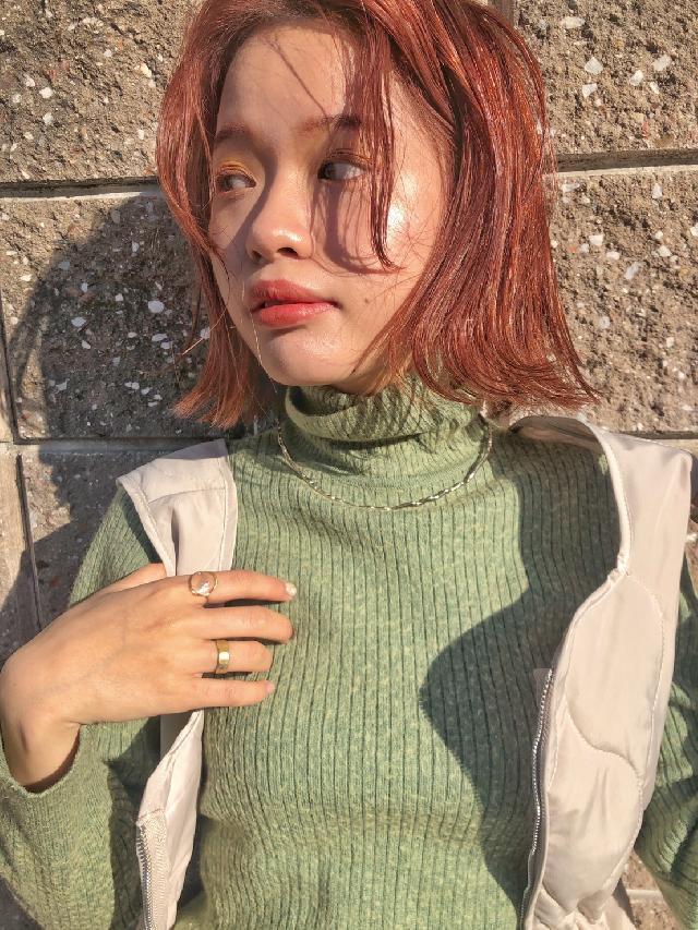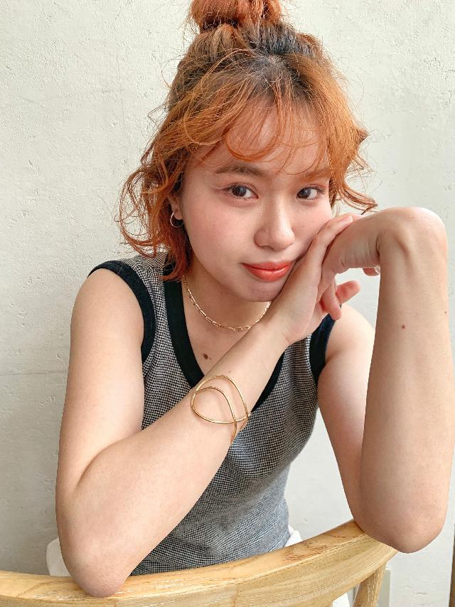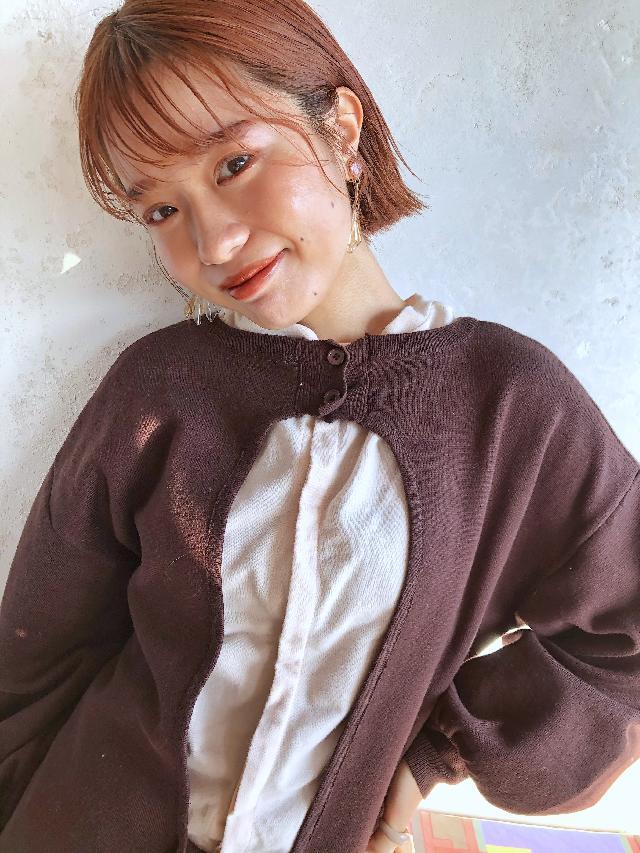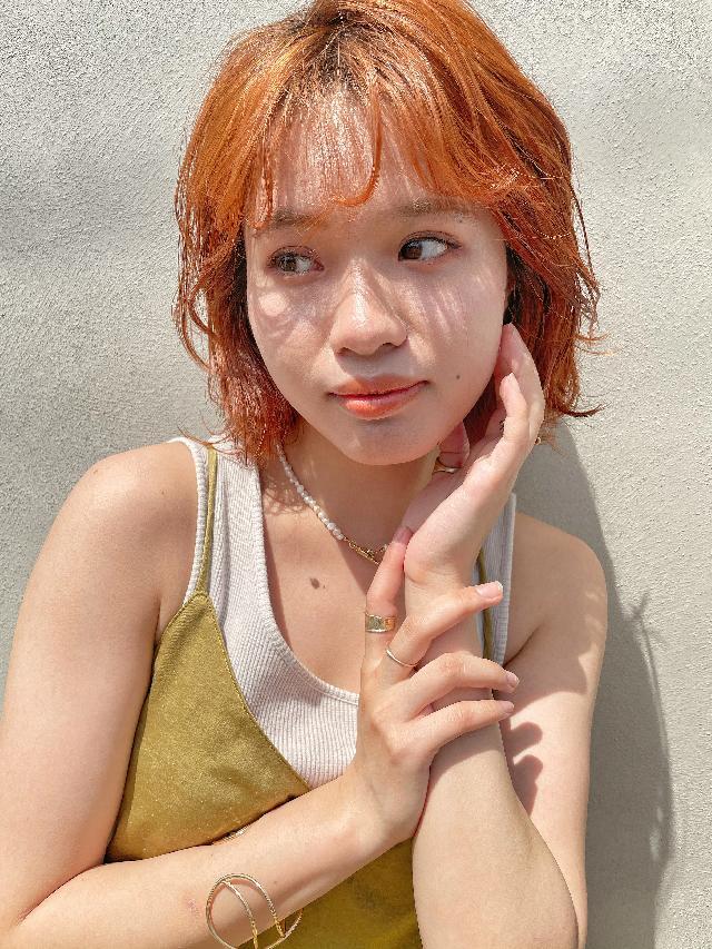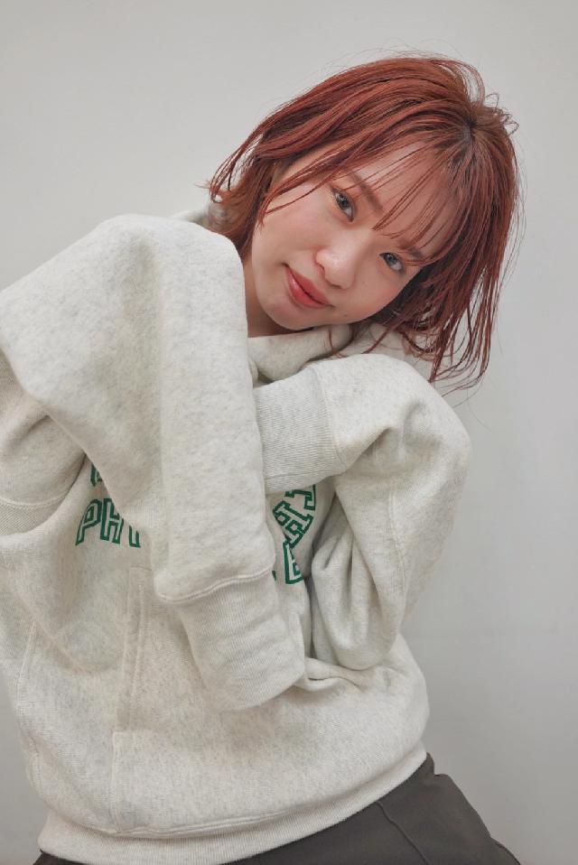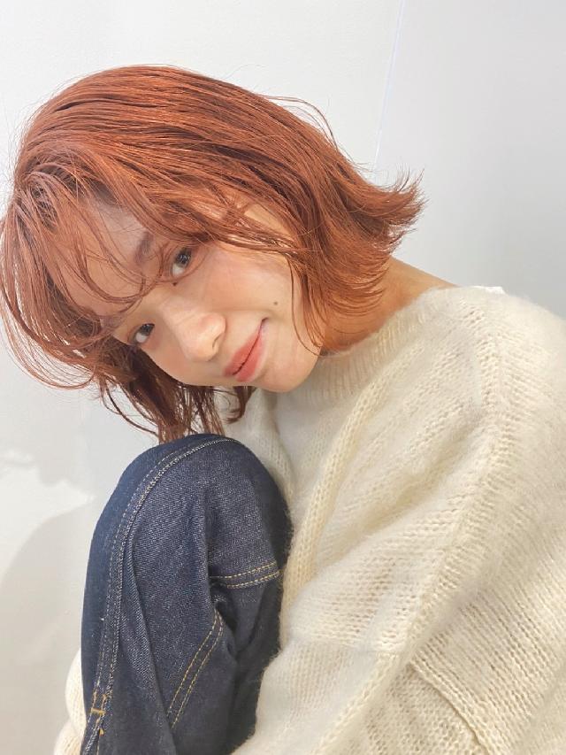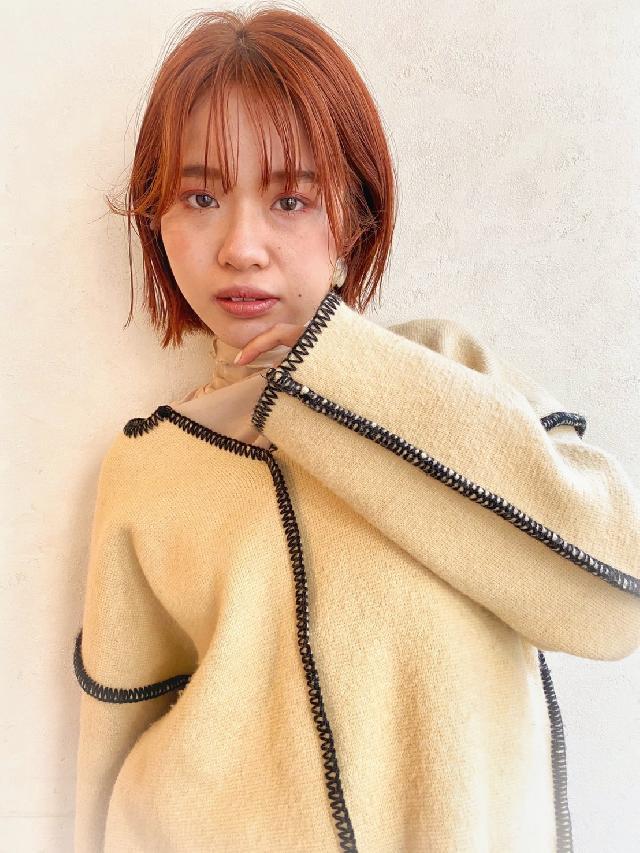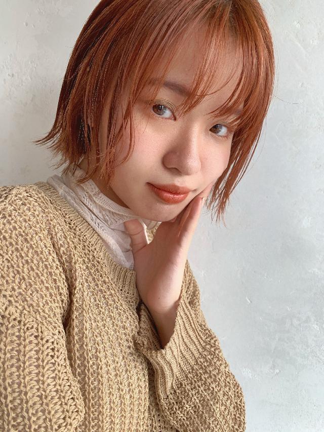 現在髪型はボブの前髪ありで少し長めのオレンジカラーです!